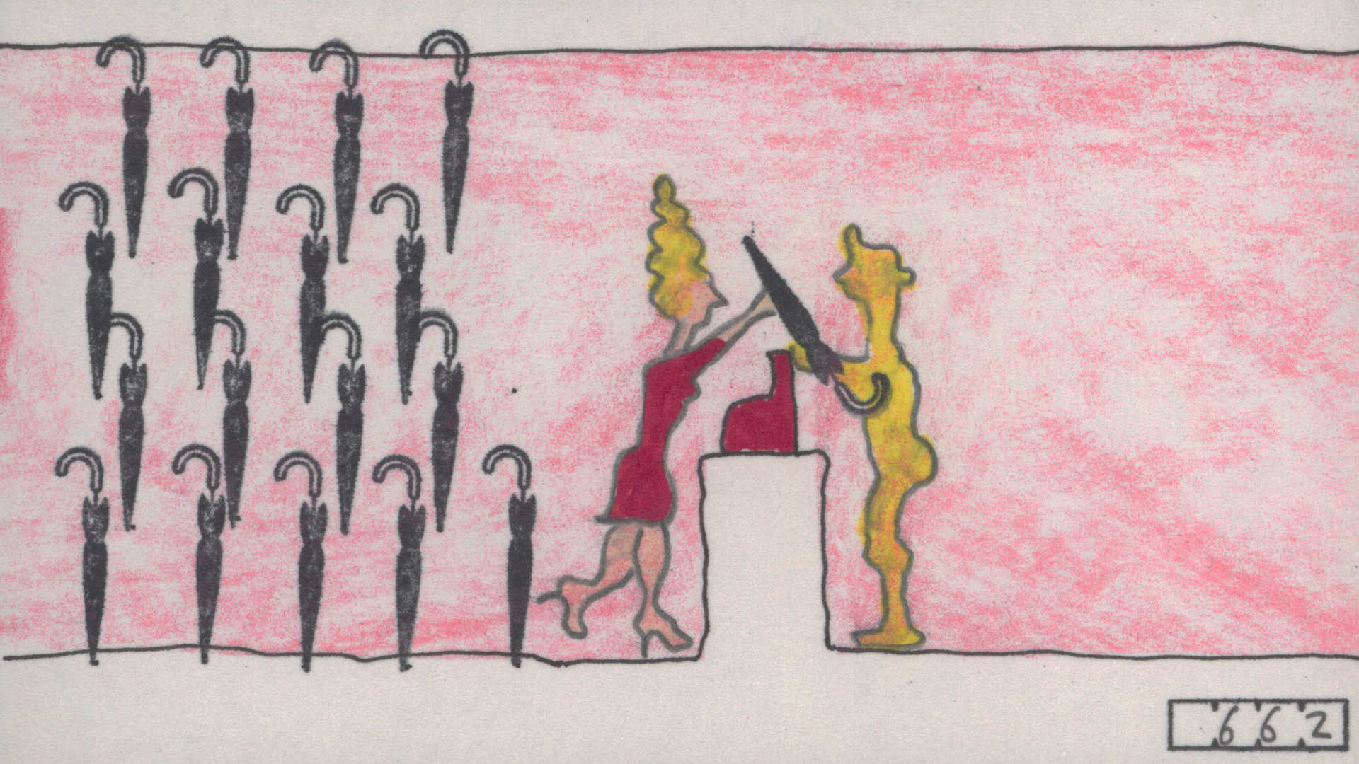 Random Thoughts was inspired by my experiences with and at film festivals. The idea for the film came to me while walking three miles in the rain from my hotel to the Michigan Theater where the Ann Arbor Film Festival screened my film Boomerang (Best Music Video Award, 2017). I did this walk every morning for several days, and had to buy two umbrellas: one because it was raining and I couldn't find my umbrella while packing for the trip, and another because I left the first umbrella at a late night after-party. Anyway, on my walk I observed pine cones that resembled dog turds, and lot of other visual treats.