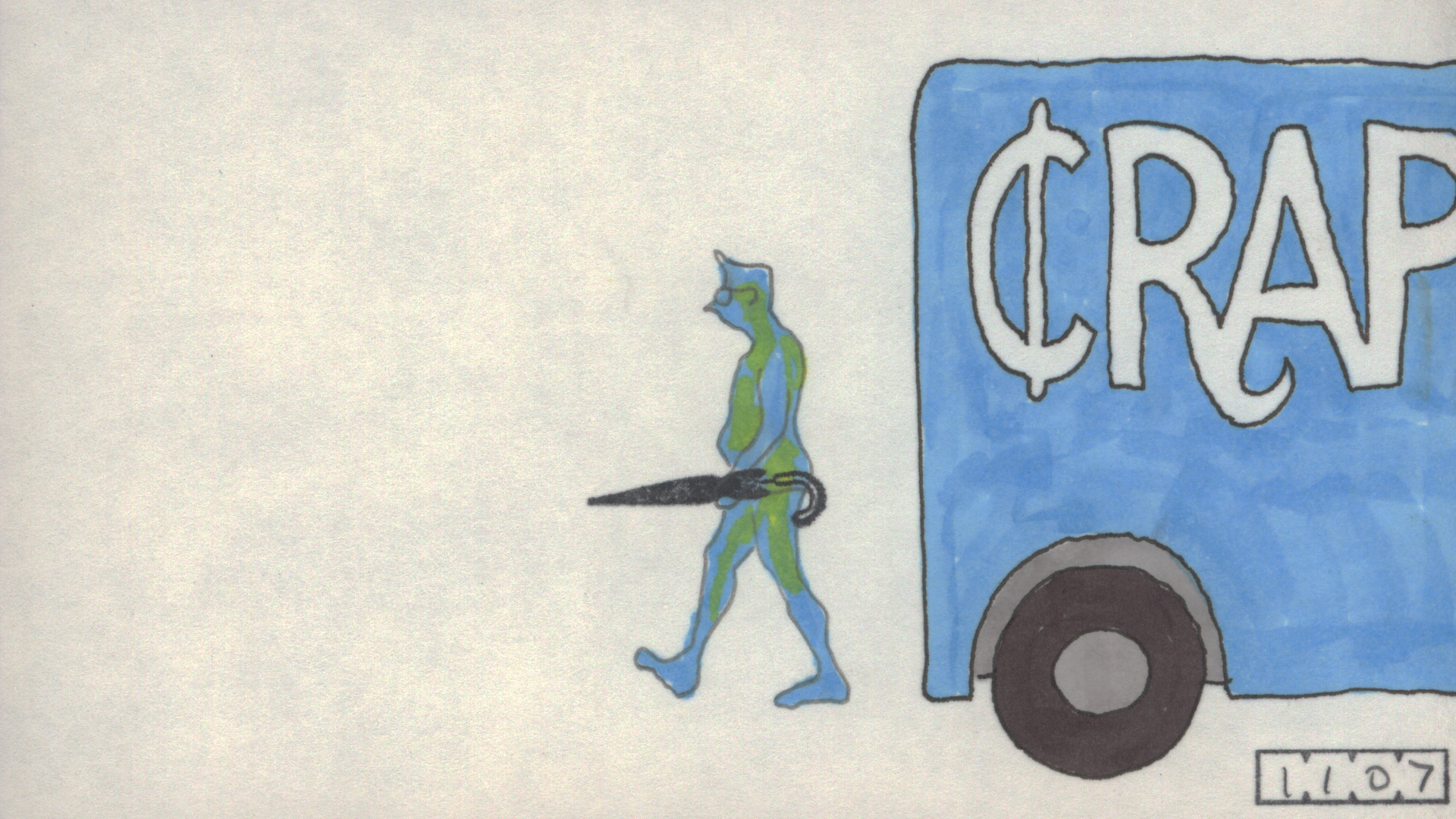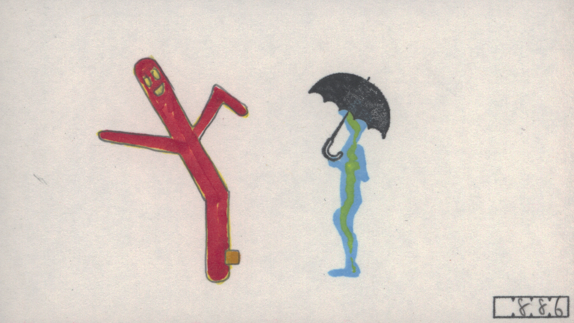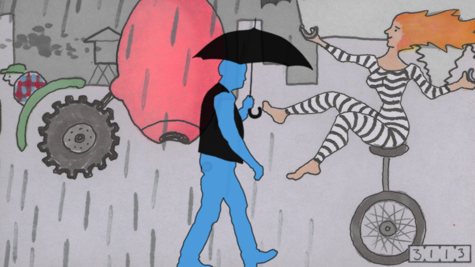 - Near the end of the film, the main character walks past cameos of elements from the animator's previous films: flying hotdogs from "Beans From Another Planet", a rhino from "Arcata Brain Closet", orange Honda Fit from "More From Life", a farmer on a tractor from "Salmon Deadly Sins" and the lady on the unicycle is from "Boomerang".