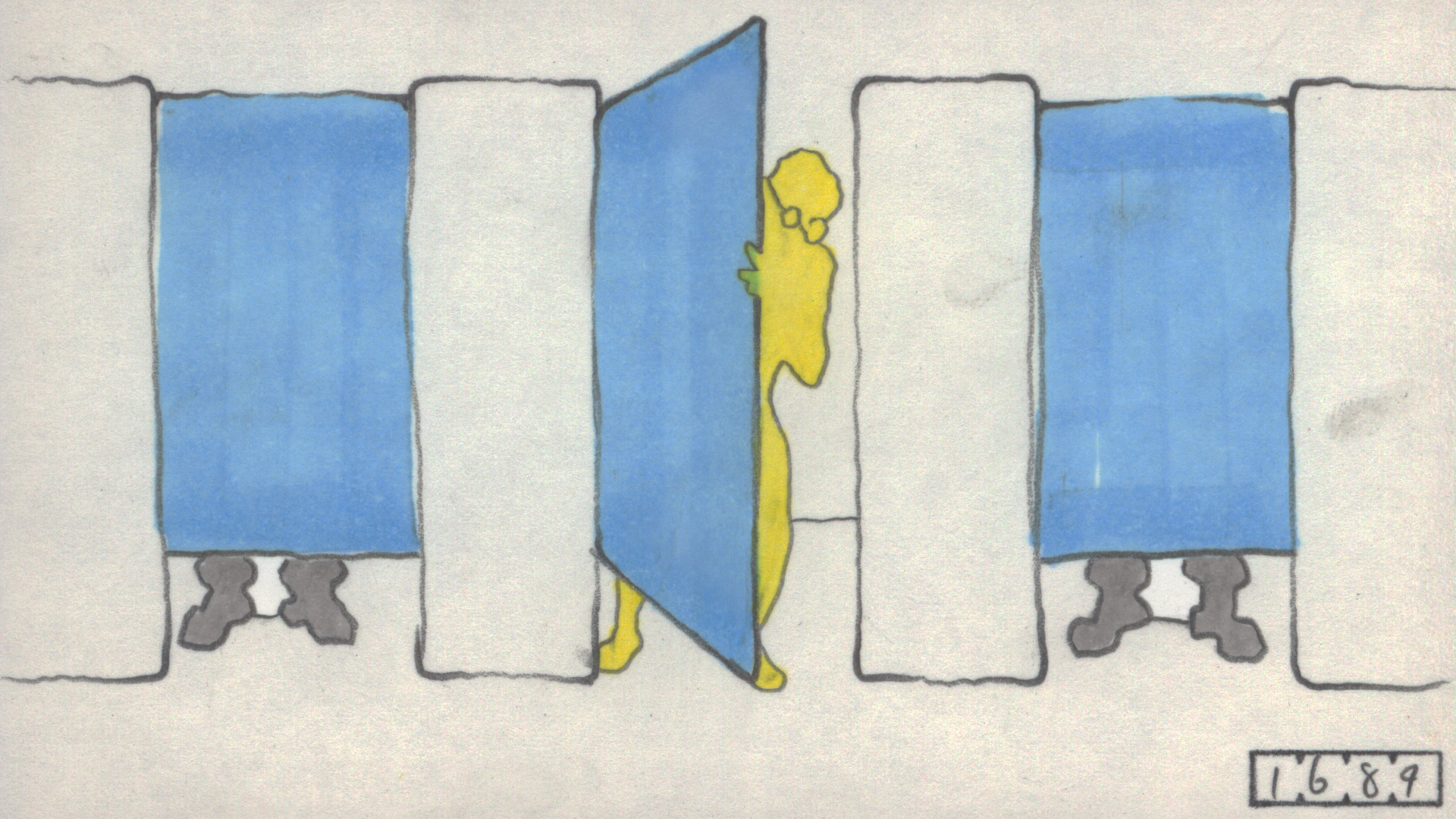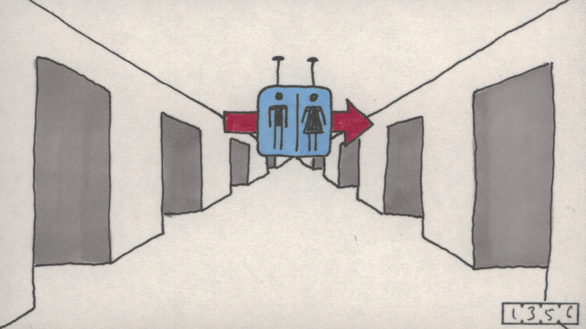 An undaunted filmmaker searches for inspiration... and a bathroom.