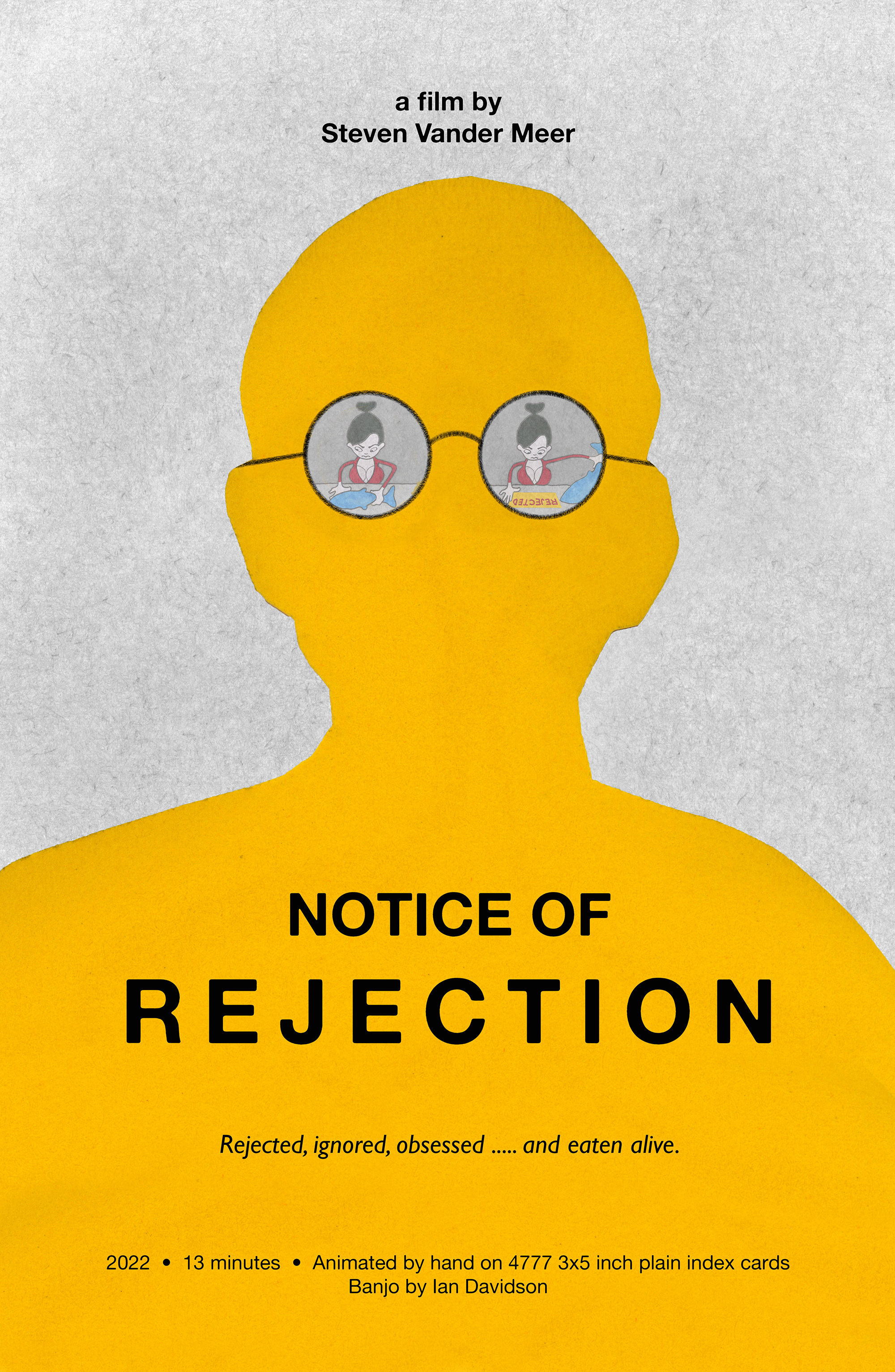 - All of the yellow bits in the film are hand cut pieces of yellow paper that are glued onto the index cards.